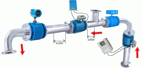 流量計(jì)前方*少要有5×D(D為流量計(jì)內(nèi)徑)長度的直管段,后方*少要有3×D(D為流量計(jì)內(nèi)徑)長度的直管段;