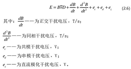 從上圖 2.5 中可以觀察到兩個(gè)電*、勵(lì)磁線圈、轉(zhuǎn)換器內(nèi)阻之間形成了一個(gè)閉合回路,將此回路稱之為初級(jí)繞組,從理論上進(jìn)行分析,磁力線 B 應(yīng)當(dāng)平行于勵(lì)磁線圈所產(chǎn)生的磁感應(yīng)線,但在實(shí)際的應(yīng)用過程中由于工藝差異,因此無(wú)法達(dá)到理想狀態(tài),會(huì)產(chǎn)生磁力線穿過勵(lì)磁線圈磁感應(yīng)線的情況,此時(shí)將會(huì)產(chǎn)生相應(yīng)的感應(yīng)電動(dòng)勢(shì),將此部分感應(yīng)電動(dòng)勢(shì)稱為變壓器效應(yīng)。此效應(yīng)同樣滿足于楞次定律,利用楞次定律進(jìn)行計(jì)算可得如下電動(dòng)勢(shì):