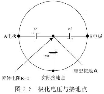 直流干擾主要來(lái)源于高壓電磁流量計(jì)工作時(shí)出現(xiàn)的電化學(xué)噪聲。當(dāng)電解質(zhì)和接液部件一旦接觸,電解質(zhì)中的正負(fù)離子將會(huì)即刻出現(xiàn)定向運(yùn)動(dòng),即使沒有通電,電解質(zhì)中的正負(fù)離子會(huì)產(chǎn)生一個(gè)定向運(yùn)動(dòng),此時(shí)在電解液中會(huì)形成一個(gè)明顯的電位差,出現(xiàn)的此種現(xiàn)象被稱為*化現(xiàn)象??蓮膱D 2.6 中進(jìn)行觀察,兩個(gè)電*若是產(chǎn)生了大小相等,方向相反的電位e1=e 2時(shí),兩個(gè)電*之間的電位差可視為零;當(dāng)兩個(gè)電*之間的電位呈現(xiàn)出e1 ≠e2 的關(guān)系時(shí)則表示兩個(gè)電位之間存在一個(gè)明顯的電位差,產(chǎn)生的電位差之間則會(huì)出現(xiàn)相應(yīng)的電流從而形成*化電壓。此電壓與共模電壓3e 將會(huì)共同被轉(zhuǎn)換器前的放大器攝取,此時(shí)*有可能會(huì)出現(xiàn)放大器無(wú)法工作的情況,此種情況主要是由于*化電壓過大所導(dǎo)致,當(dāng)*化電壓較大時(shí)將會(huì)把放大器的輸入端堵塞,此時(shí)放大器無(wú)法正常工作。為了能有效的避免發(fā)生此種情況需要控制降低在電磁場(chǎng)中所產(chǎn)生的*化電壓。