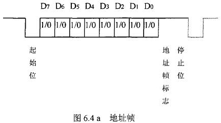 硫酸流量表等節(jié)點設(shè)備和站內(nèi)PC機間的通信采用異步串行通訊控制規(guī)程,并采用地址位喚醒握手協(xié)議。因此在協(xié)議中規(guī)定了傳地址和傳數(shù)據(jù)兩種不同的幀格式,如圖.64所示。地址幀和數(shù)據(jù)幀由11位構(gòu)成,幀格式為l位起始位,l位停止位,8位數(shù)據(jù)位,1位*9位。我們將*9位設(shè)定為“地址/數(shù)據(jù)指示位”,用來區(qū)分所發(fā)送/接受的幀信息是地址幀還是數(shù)據(jù)幀。*9位為1,表示PC機發(fā)送/接受的是“地址幀”*9位為O,表示主機發(fā)送/接受的是“數(shù)據(jù)幀”。命令幀與校驗和的發(fā)送格式與數(shù)據(jù)幀相同,因此可由數(shù)據(jù)幀演化得到。