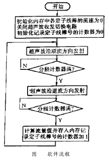 單片機(jī)控制電路主要完成3種功能:(1)控制計數(shù)電路的工作時序;(2)完成收發(fā)換能器的切換;(3)將測量的流速值通知上位機(jī)(圖6)。