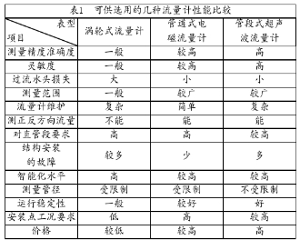 幾種可以進(jìn)行比較的流量計(jì)的性能特點(diǎn),見(jiàn)表1。